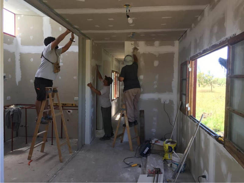 Albañilería tradicional: total y parcial. Construcción en seco: pared y techo. Instalaciones sanitarias: agua fría y caliente, columnas de agua y cloacas. Pintura integral: interior y exterior. Impermeabilizaciones: techos, muros y cimientos, membranas, pinturas, asfaltos fríos e inyectado de muros. Herrería: de obra y trabajos especiales. Techados: hormigón, tejas, chapas, policarbonato